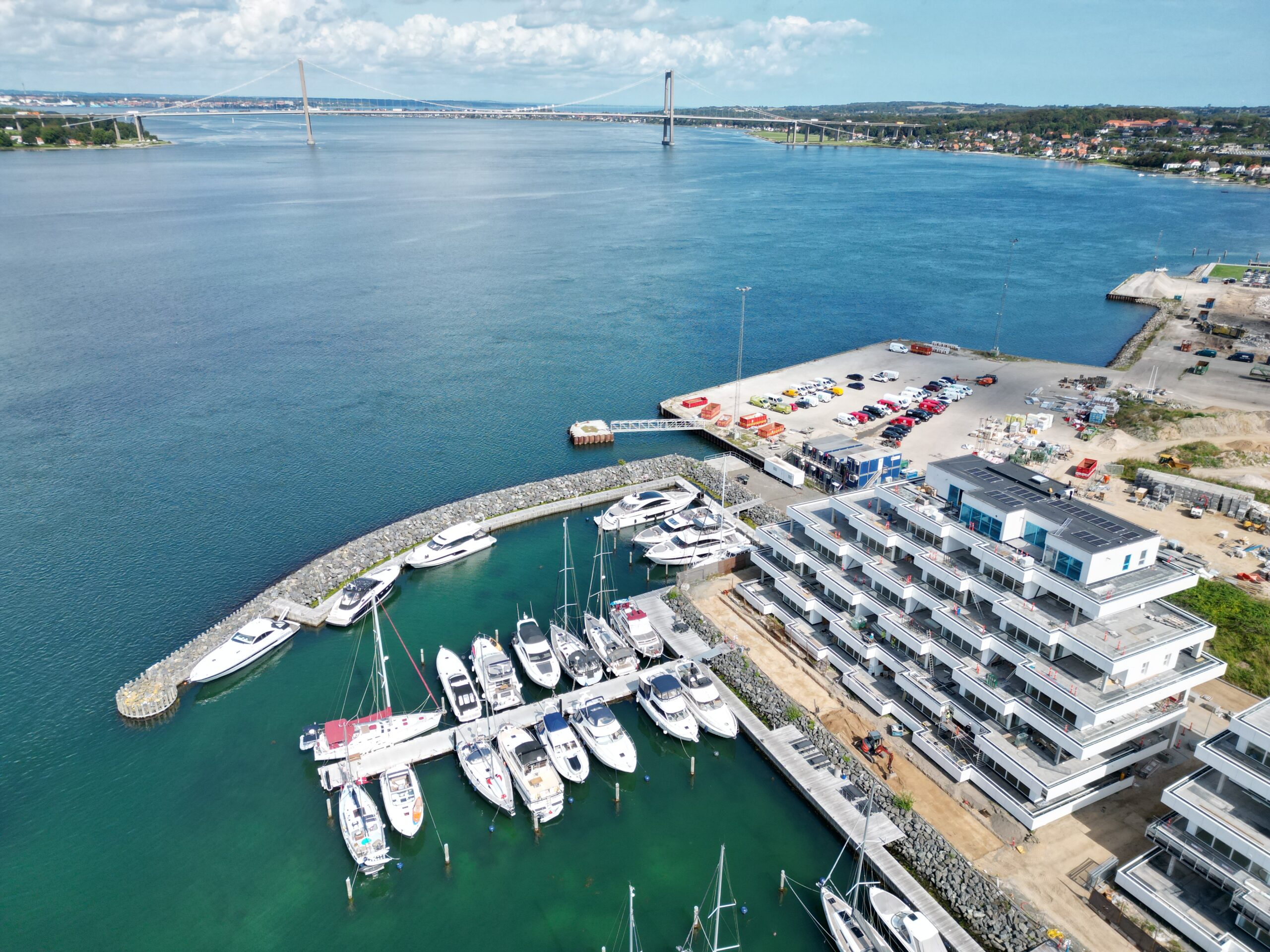Grunden ved havnen blev i mange år benyttet til oplagring af kul. Nu opfører CG Jensens 55 nye luksuslejligheder på Middelfarts Havne-promenade med udsigt til både den gamle og den nye Lillebæltsbro.